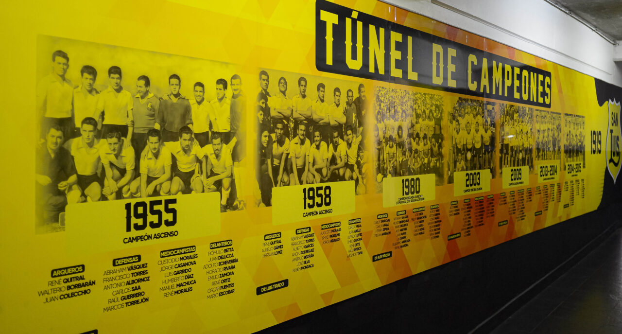 Siguiendo con las actividades, y tal como ha sido la tónica de los últimos años, nuestro Club ha decidido celebrar un nuevo aniversario perpetuando la historia de San Luis de Quillota. Es así como en este 104 cumpleaños, hemos inaugurado el Túnel de Campeones, lugar donde se plasman los 7 planteles que han levantado un trofeo y jugadores históricos a lo largo de la historia del Club.